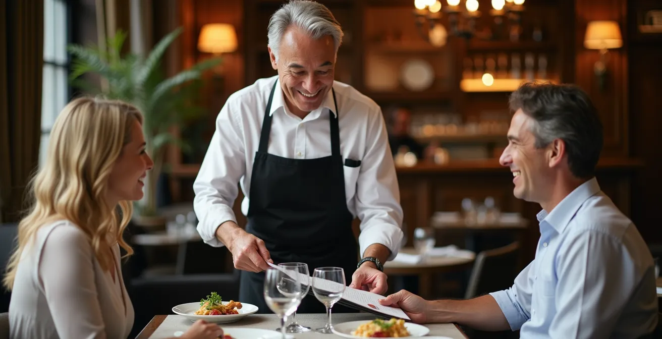 La psychologie de service est au cœur de cette stratégie. Elle consiste à comprendre et anticiper les désirs du client, parfois avant même qu’il ne les formule. Cela passe par une écoute active, la reformulation de ses envies pour montrer qu’il a été compris, et l’utilisation de techniques de vente subtiles comme le « choix illusoire » ou la « vente par association ». Par exemple, au moment de la commande du plat principal, un serveur expert peut glisser : « Excellent choix. Ce plat se marie à merveille avec notre verre de [Nom du vin]. Je vous le sers en même temps ? ». Cette approche proactive et pertinente augmente considérablement les chances de vente additionnelle. Un autre levier puissant est l’ingénierie de menu, qui guide subtilement le regard et le choix du client.
